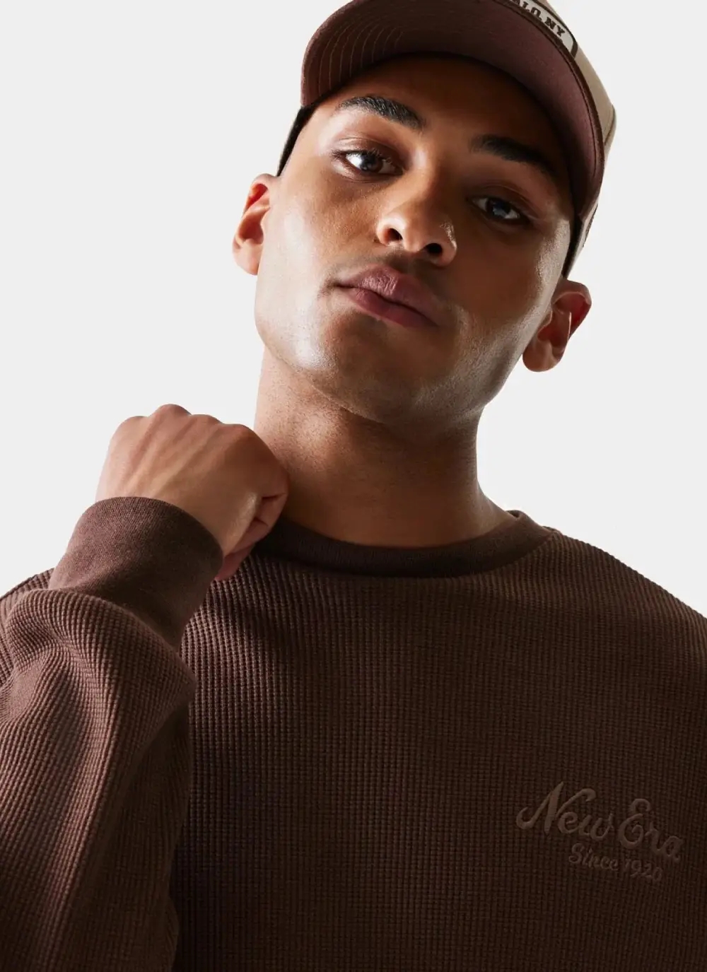 • New Era Script Waffle Ljus Beige Rundhalsad Tröja